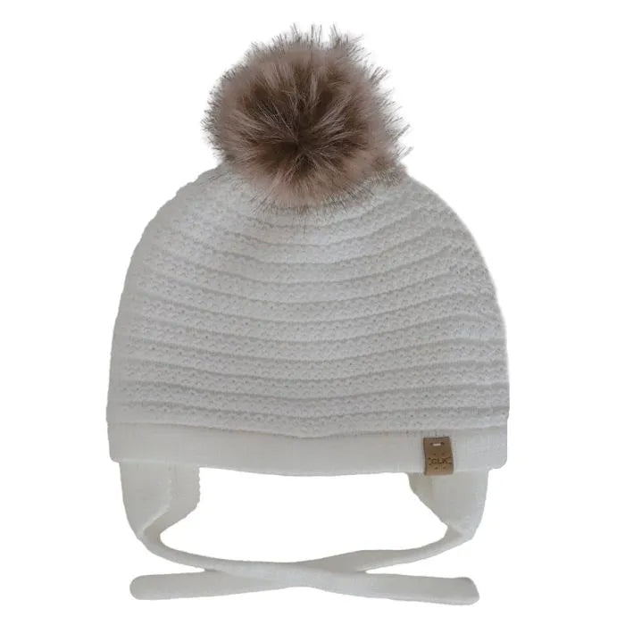 Knit Windproof Pompom Hat - Parchment