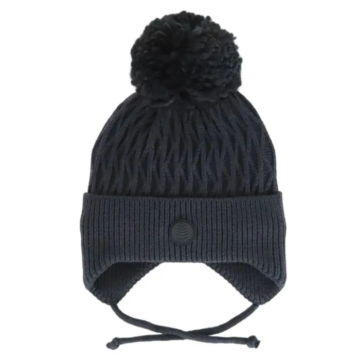 Fleece Lined Windproof Pompom Hat - Black Ink
