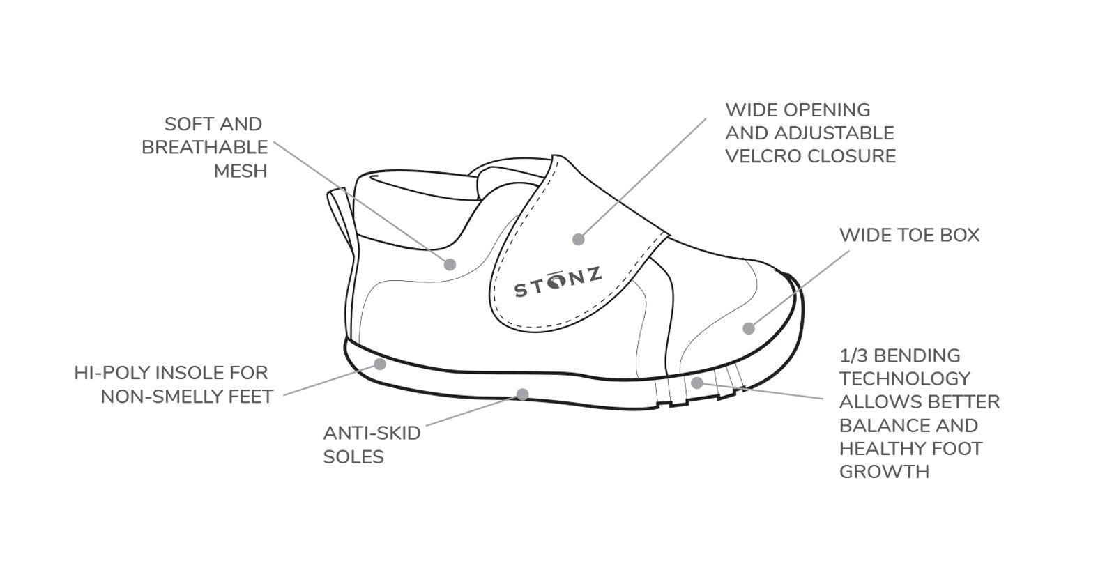 Comfortable for them and easy for you, the wide opening of the Cruiser ensures you can slip them on and be out the door without the hassle; perfect for those hectic mornings. With a little practice, they’ll be walking, running and jumping in no time!