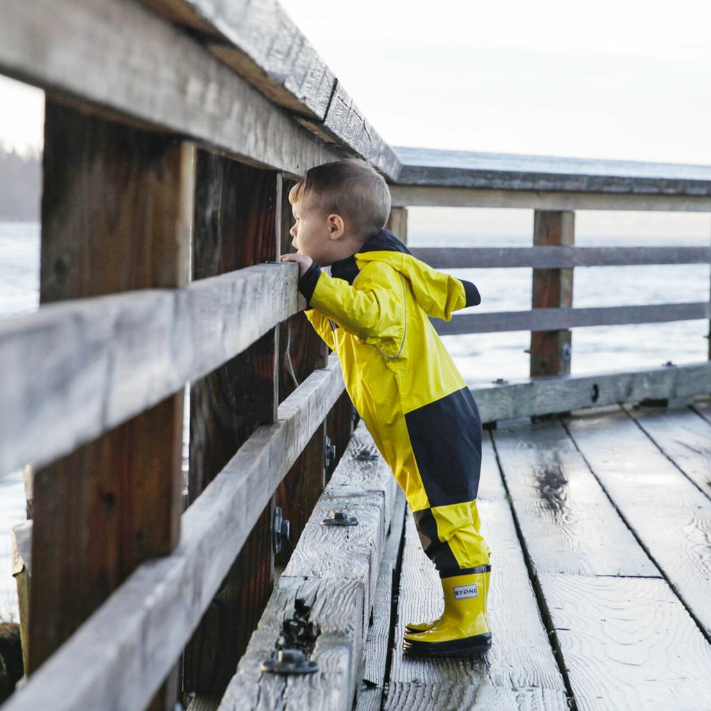 Perfect for jumping over puddles and discovering secret creeks, our colorful rain suits keep up with your little explorer even in stormy weather. Easy to throw over whatever they’re already wearing, its loose fit lets your toddler move freely and enjoy in the rain.