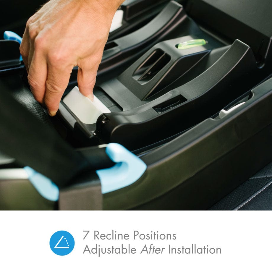 • The recline is adjustable after the base is installed, and offers up to 7 recline positions to ensure the perfect angle every time - regardless of how flat or sloped the vehicle seat may be.