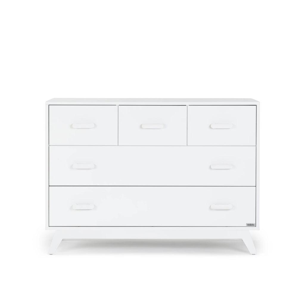 | 3 adjustable mattress heights | Dresser stability- wide drawers and fifth leg support reduce tipping |