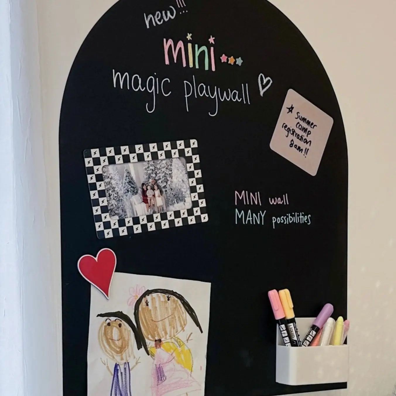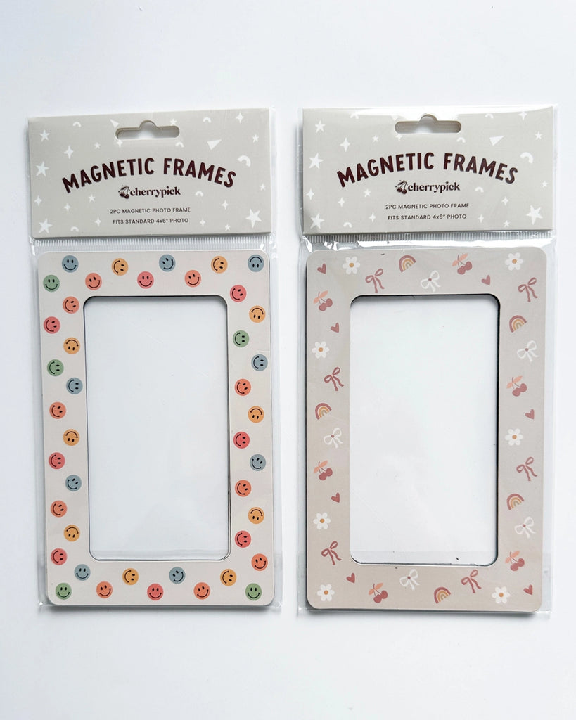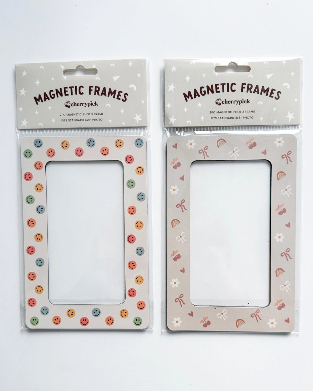 Each pack includes 2 magnetic frames, designed to hold standard 4x6" photos. They stick securely to any magnetic surface— whether it’s your fridge, locker, or our Magic Playwall.