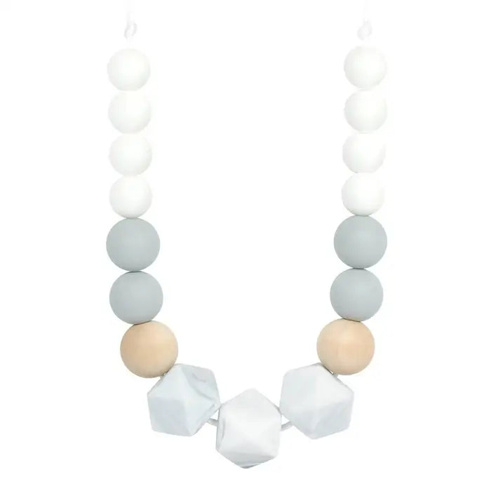 Made from 100% food grade silicone, the soft texture feels good on sore, teething gums, and provides visual and tactile stimulations for babies. Wear while carrying baby when you're out and about, or while lounging at home with baby on your lap. This necklace is truly the perfect accessory, teether, and toy all in one!