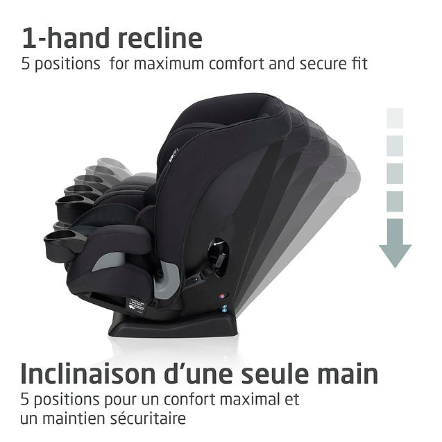 - [SUPERB FIT] 1-handed lift to raise headrest and integrated no rethread harness provides 10 different positions to support all growth stages, whether rear-facing or forward-facing.5-position, 1-handed recline for maximum comfort and secure fit.