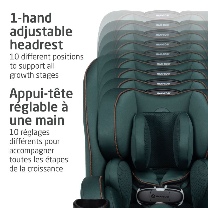 - [SUPERB FIT] 1-handed lift to raise headrest and integrated no rethread harness provides 10 different positions to support all growth stages, whether rear-facing or forward-facing.5-position, 1-handed recline for maximum comfort and secure fit.