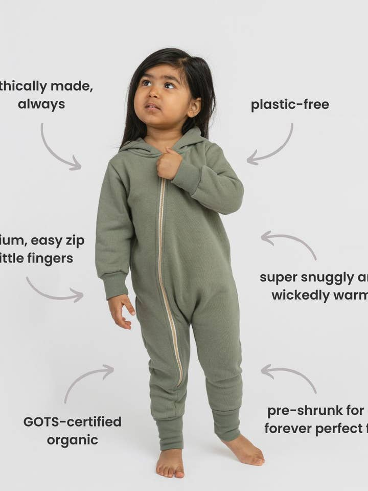 One and done! The coolest, comfiest romper they'll wear all year long - perfect layered over a basic tee or onesie and ideal for lounging or all-day play (they might not want to wear anything else). The asymmetric zip makes for easy on and off.