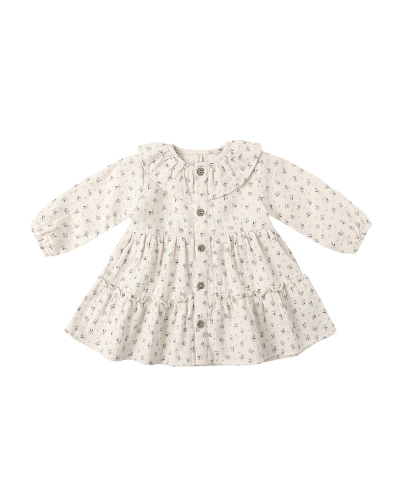 Ruffle Collar Button Dress - Bluebell