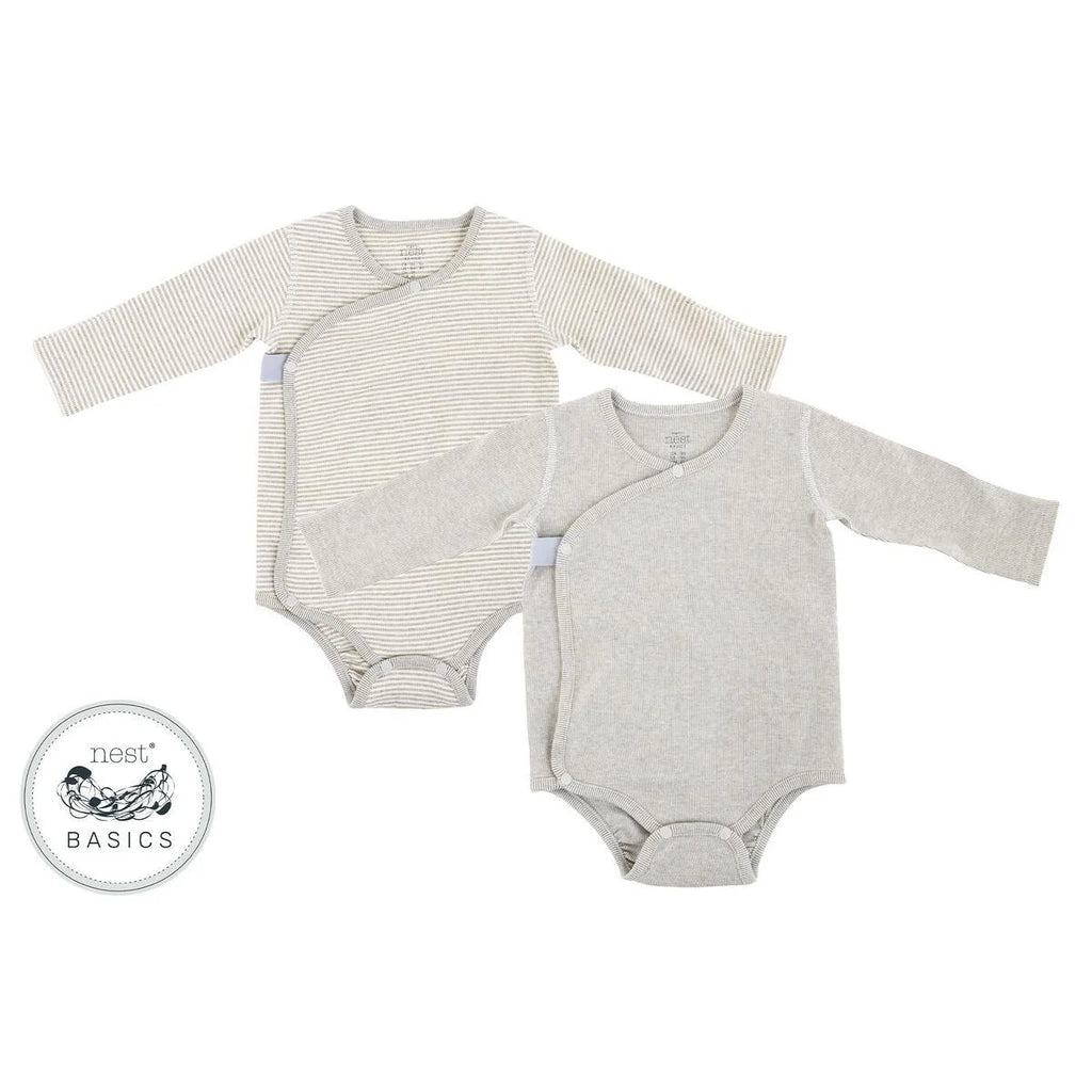 Organic Cotton Long Sleeve Kimono Onesie (2pk) - Striped & Light Grey