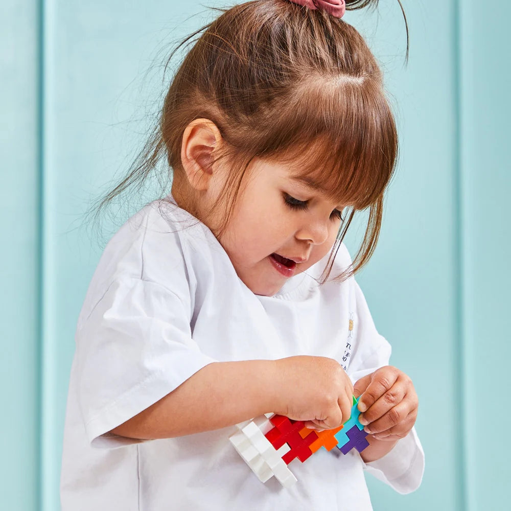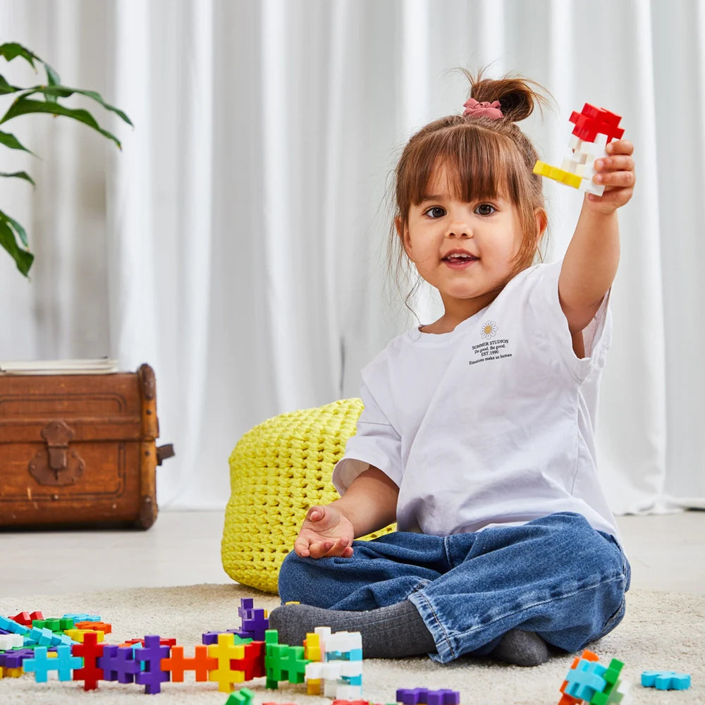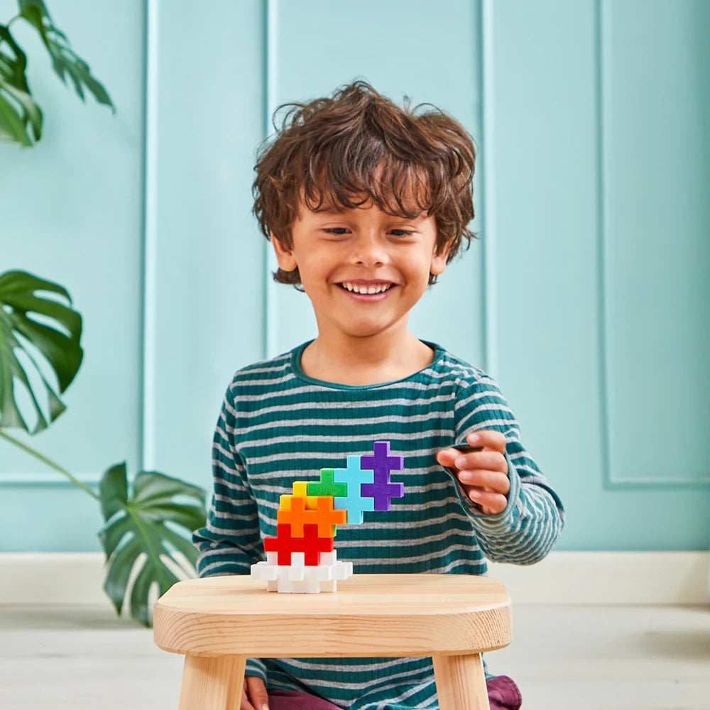 The BIG Rainbow 100 pcs mix promises endless fun and learning opportunities as children explore colors, patterns, and sorting, all while developing fine motor skills. The mix includes bright, engaging colors: White, Red, Orange, Yellow, Apple Green, Turquoise, and Purple—a cheerful palette to inspire creativity. Plus-Plus BIG is made to captivate toddlers and preschoolers.