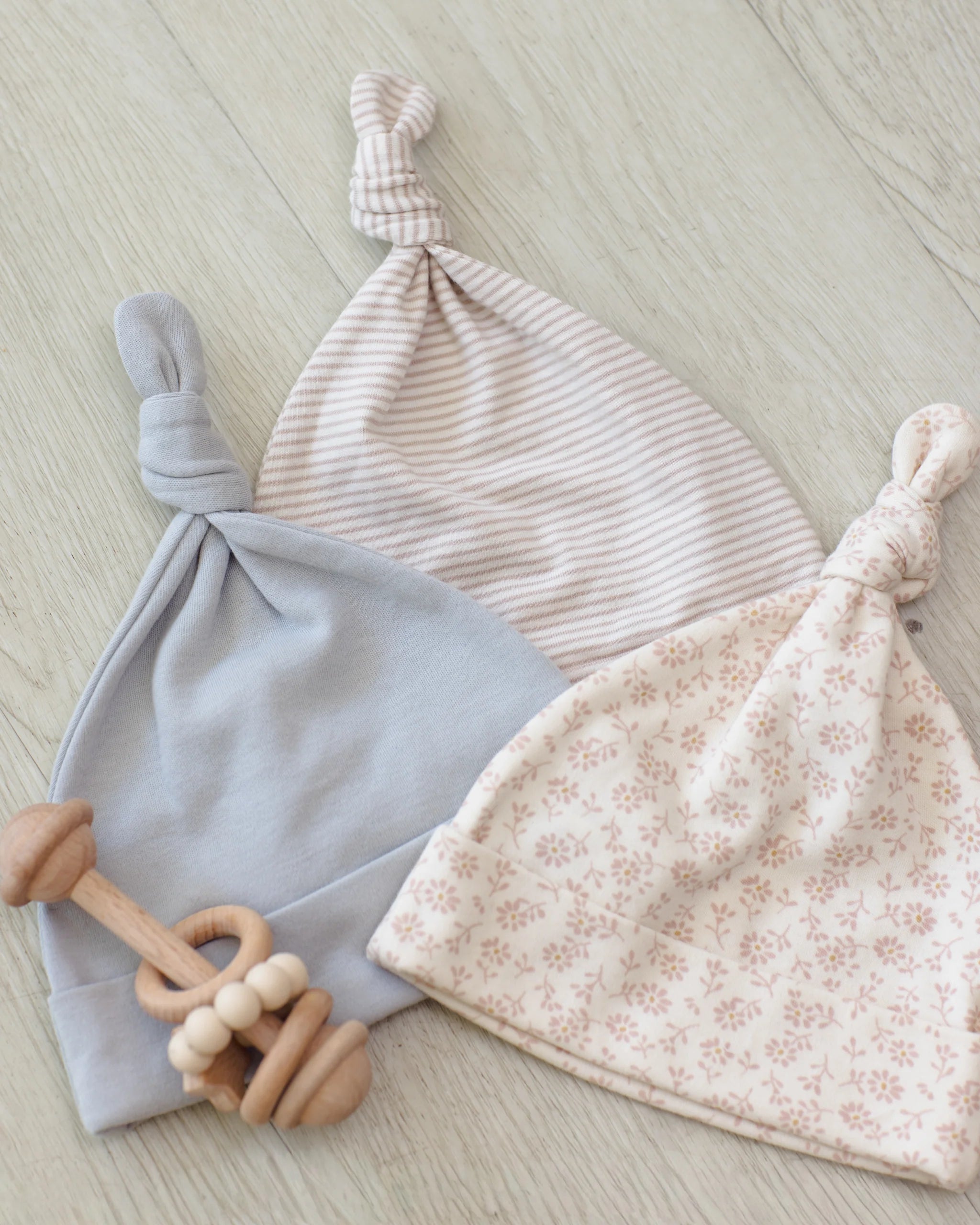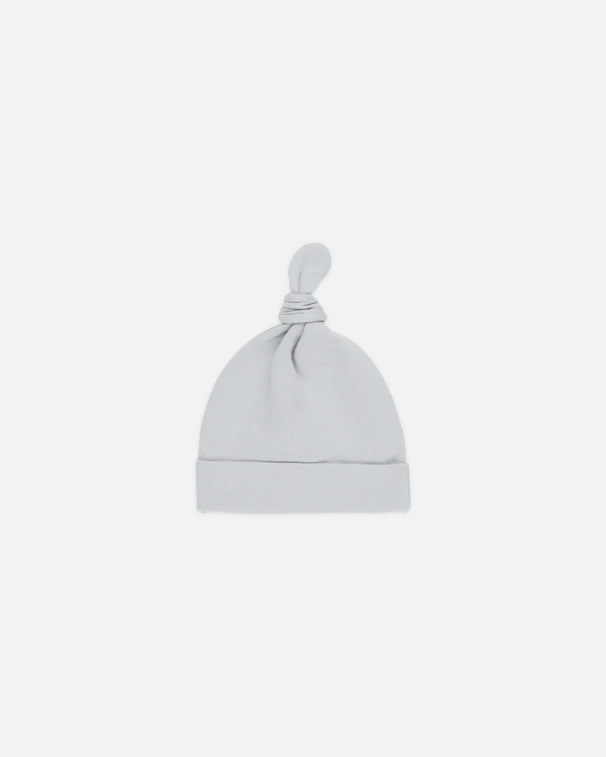 Knotted baby hat in our soft and stretchy cotton jersey material in sky.