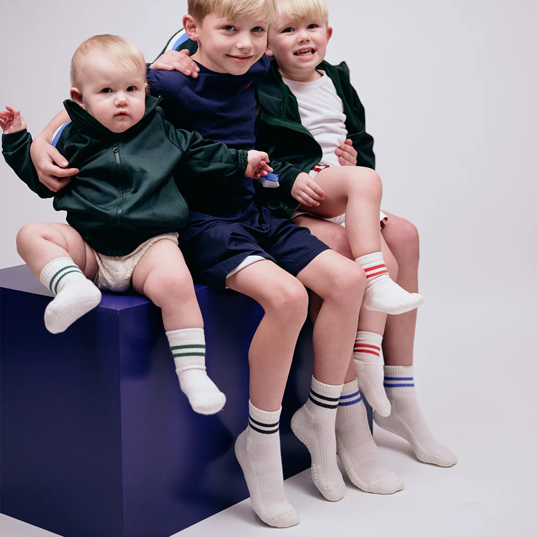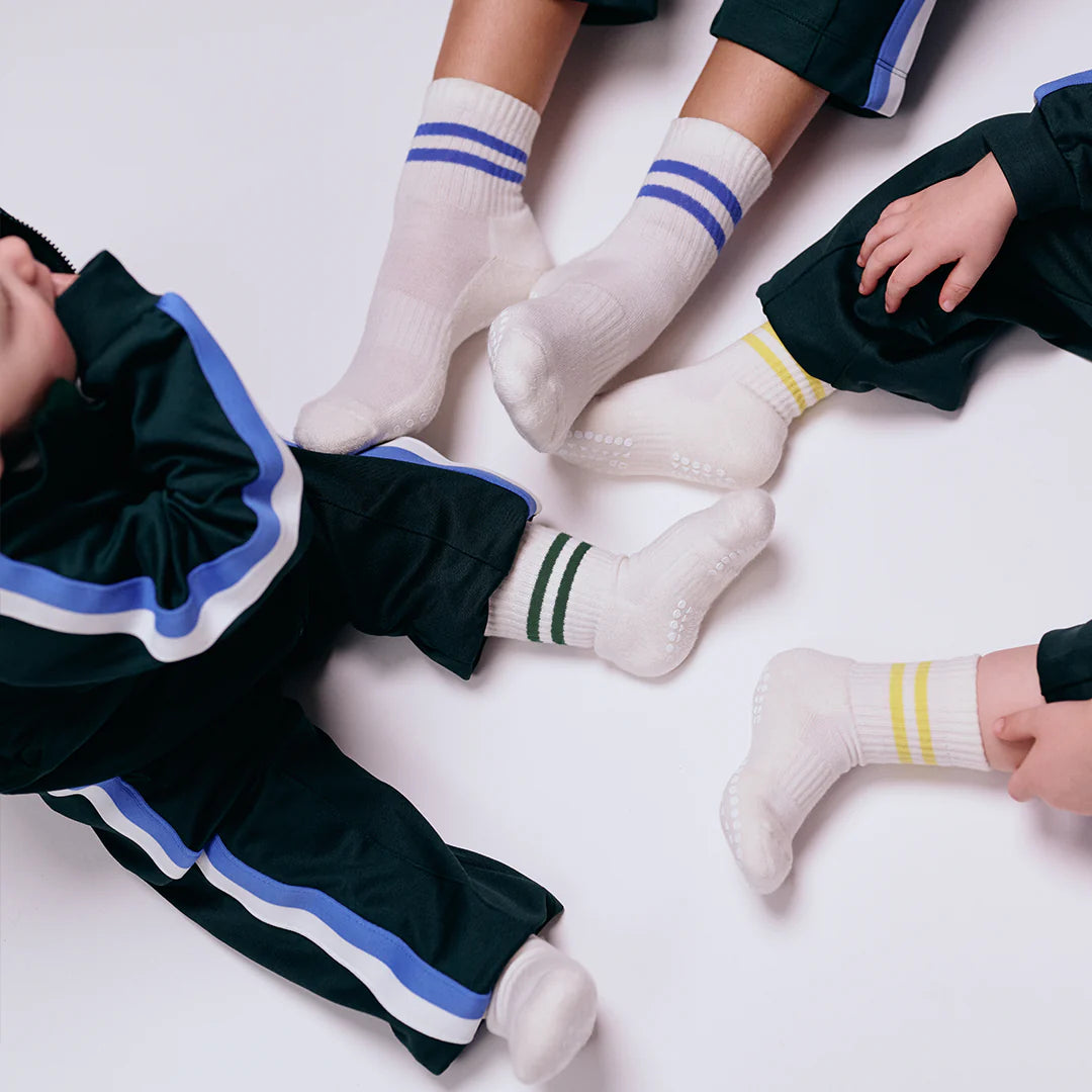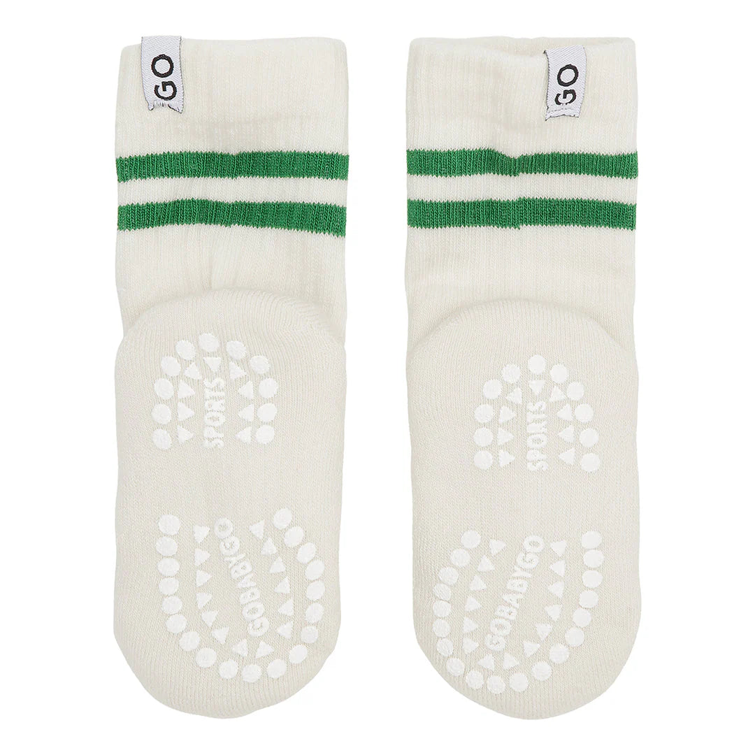 GoBabyGo grip Sports Socks, made from soft organic cotton, are perfect for all indoor and outdoor activities. These specially designed socks feature non-slip grip soles that provide better balance and enhance performance on smooth surfaces and gym floors. Ideal for gymnastics and sports, these socks ensure safety and comfort for all active toddlers and kids. Choose GoBabyGo Grip Sports Socks for superior grip and performance in any activity.