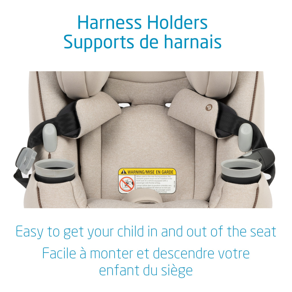 Harness Holders – Never reach behind your child to find the harness again! The holders keep the harness in a retreat position that makes it a breeze for you to get your child into the seat and buckled up.
