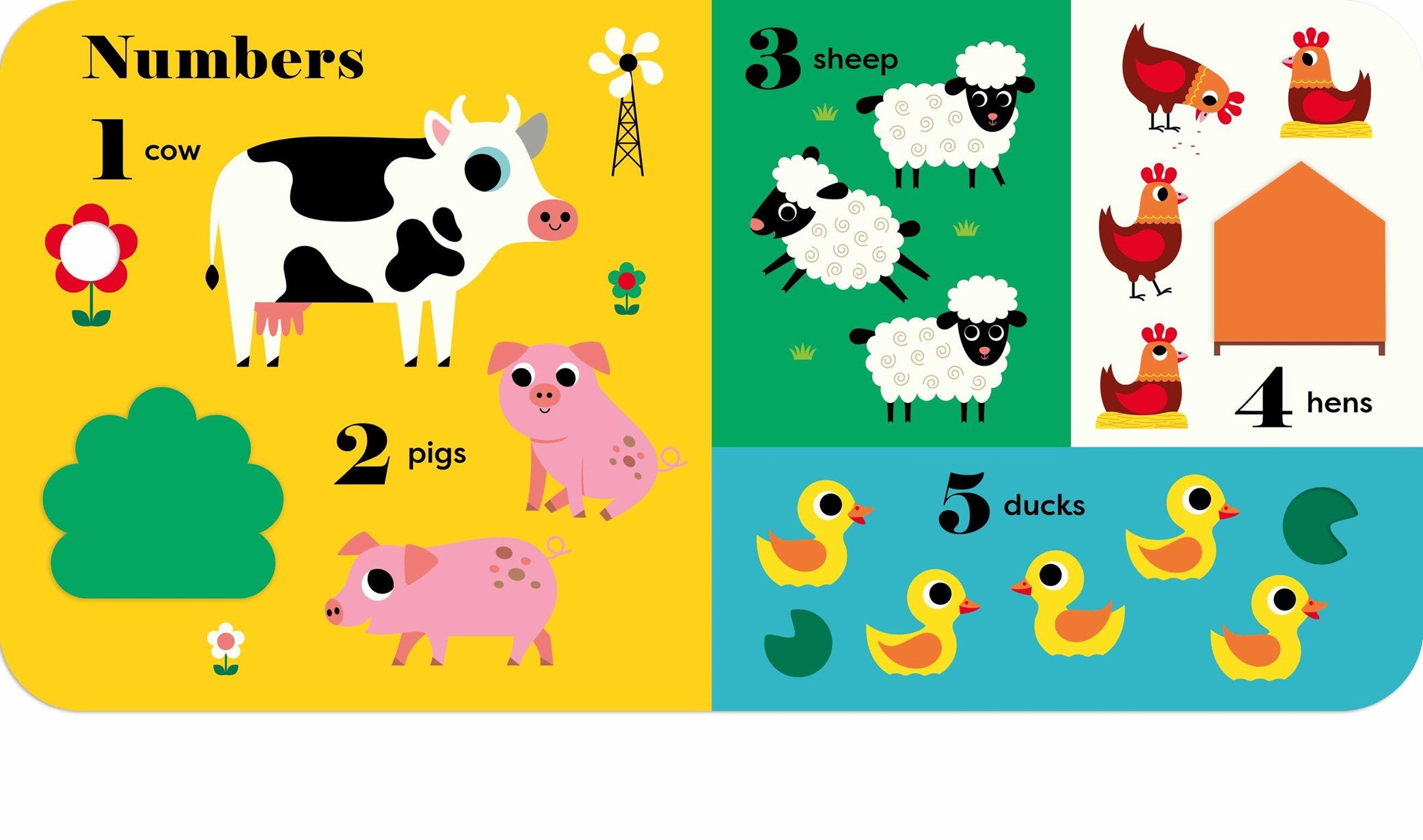 A BIG book for sharing with a little person, introducing first words, colours, numbers, farm animals and more – with felt flaps and a mirror!