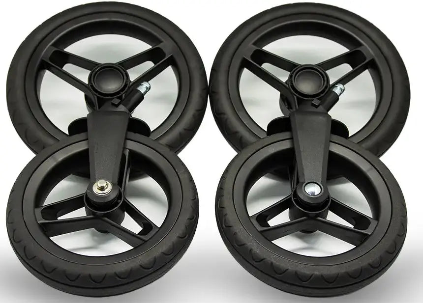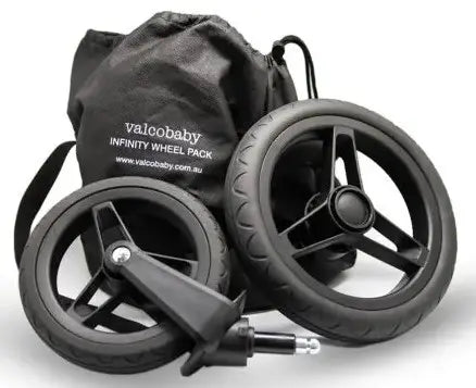 Introducing the Infinity Wheels Pack. Giving you the comfort and feel as if your stroller is riding on a cushion of air without actually needing any. It has the air tire feel without the air tire maintenance. Turn your Stroller into a light weight All Terrain Stroller, producing a smoother ride and better suspension and no need to keep pumping up with air!